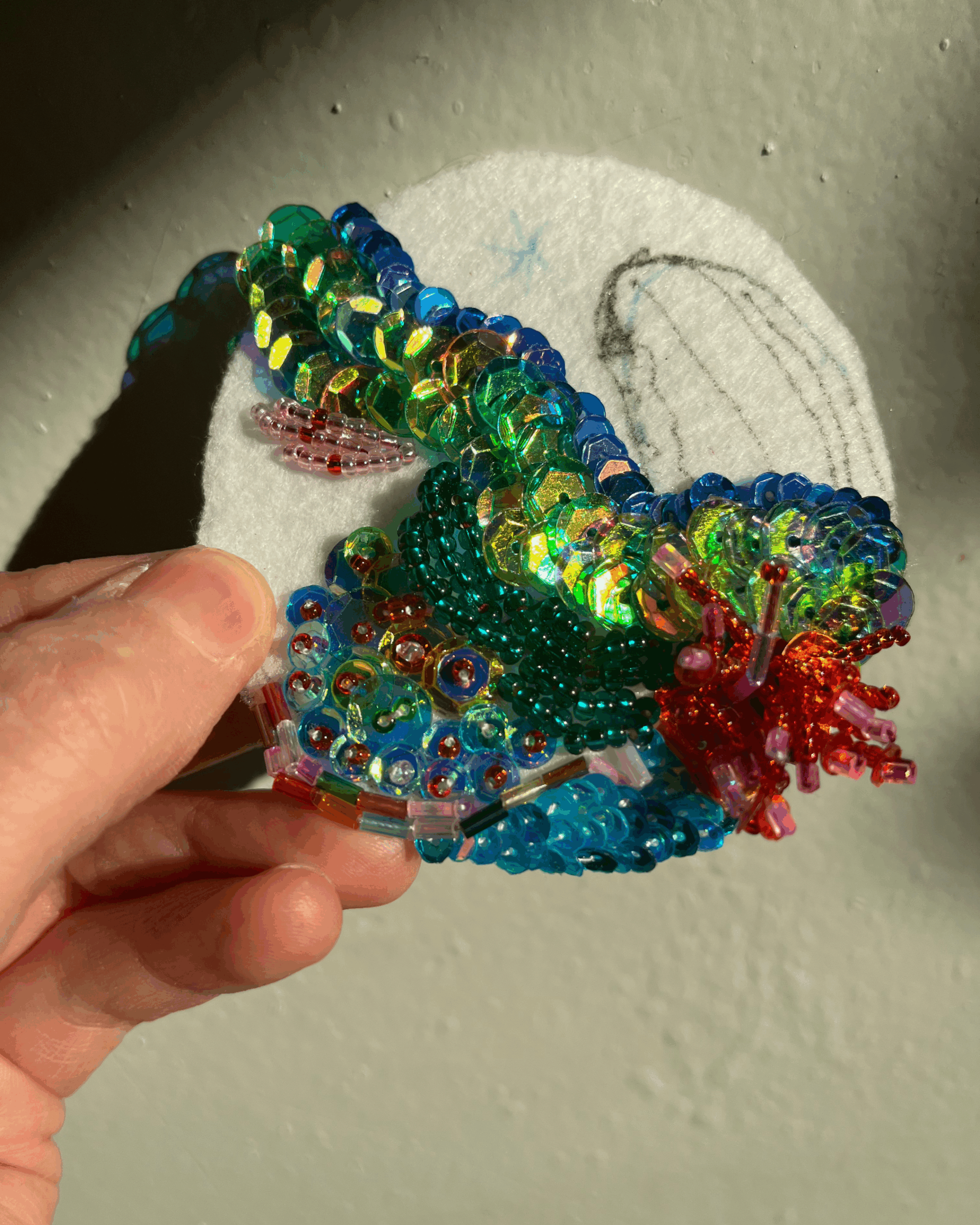 Moss & Sedum Inspired Sewing with Sequins and Beads